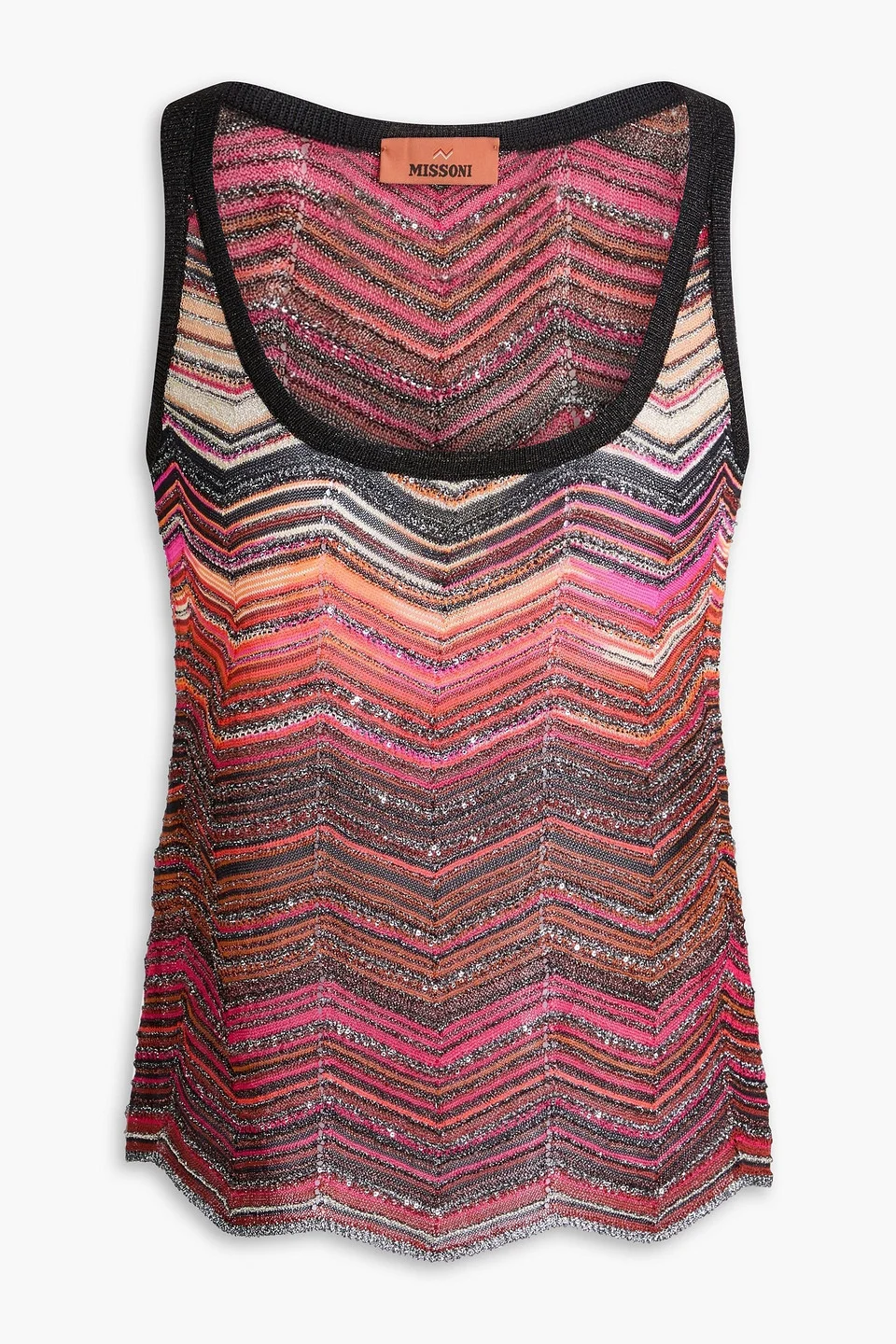Mare Sequined Striped Metallic Crochet-knit Tank