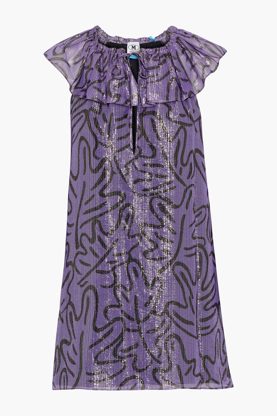 Top printed metallic georgette silk-blend ruffled tie-fastening keyhole at front fully lined non-stretchy fabric lightweight fabric dry clean made in italy 79% Silk 21% Metallic fiber Product Code 32027475399376438