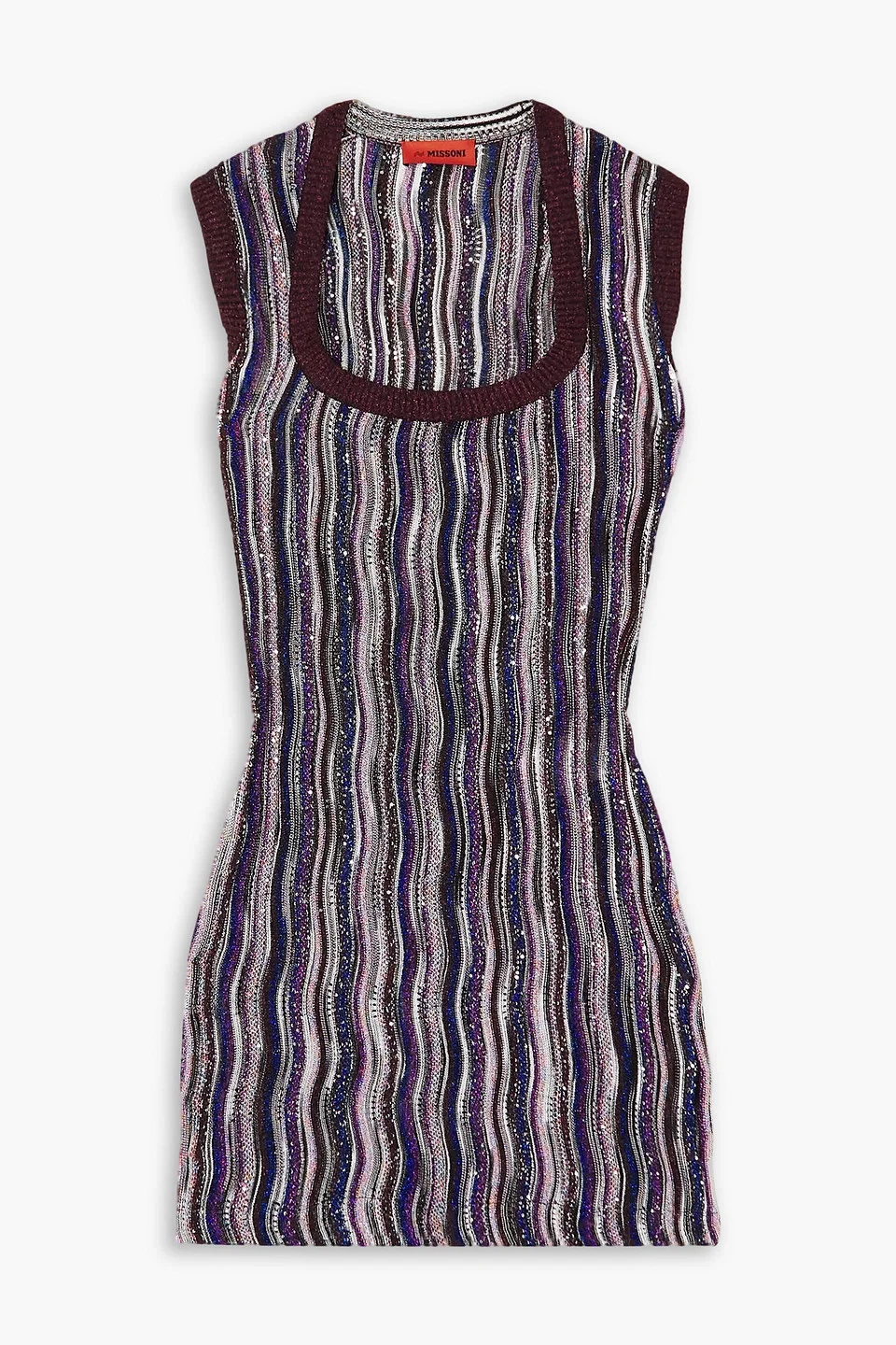 Dress metallic crochet-knit sequins slips on mid-weight knit dry clean made in italy 85% Viscose 5% Metallic fiber 5% Polyamide 5% Polyester Product Code 1647597342121989