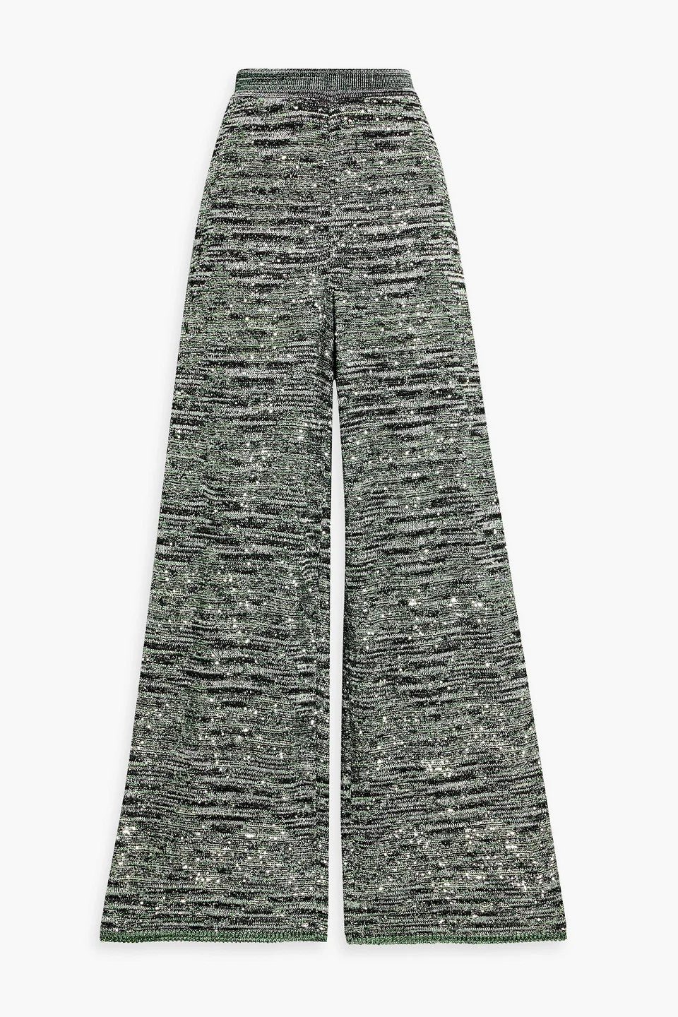 Mare sequin-embellished metallic crochet-knit wide-leg pants Green