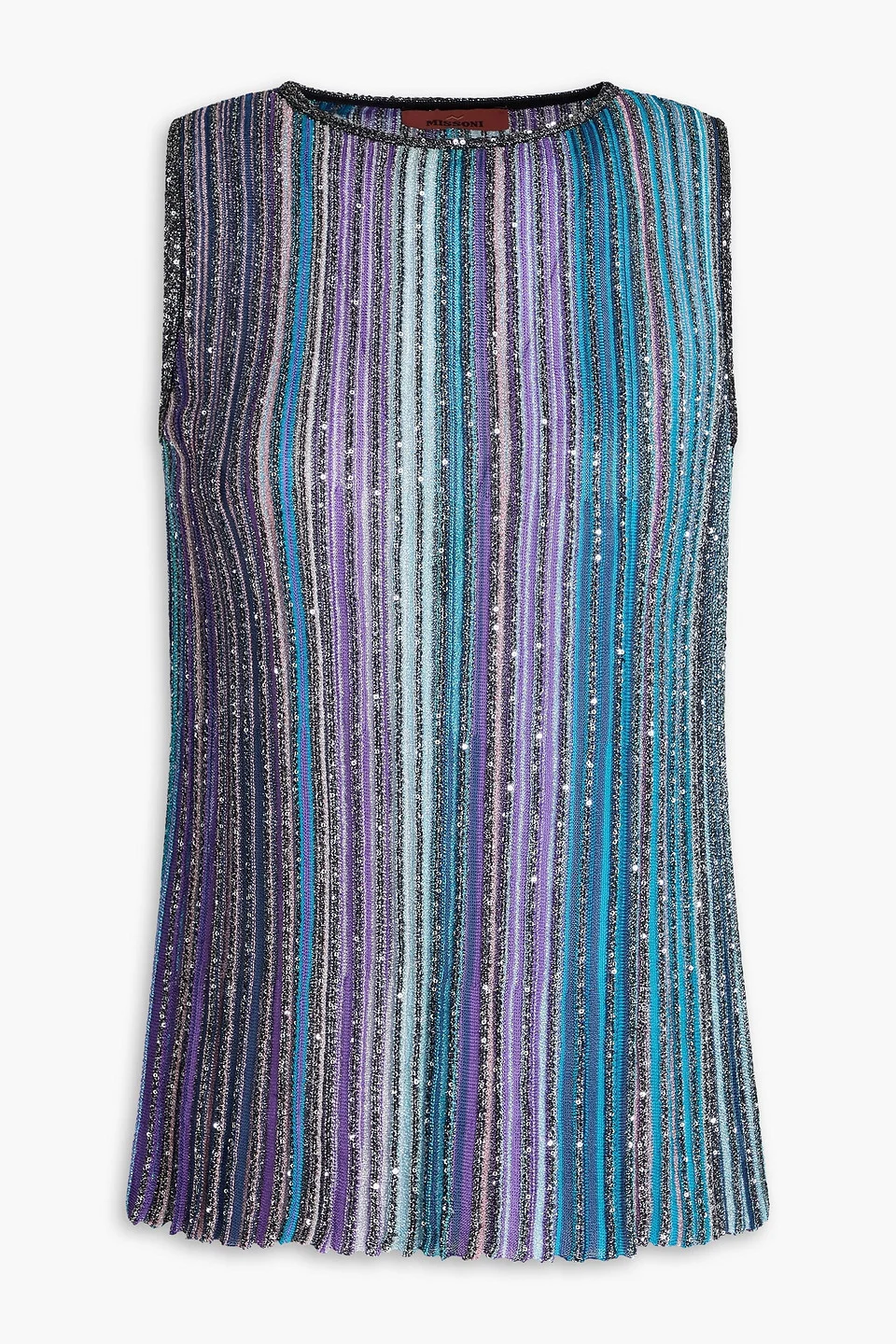 Tank striped metallic ribbed-knit sequins slips on lightweight knit hand wash or dry clean made in italy 41% Viscose 21% Metallic fiber 19% Polyamide 19% Polyester Product Code 46376663162881944