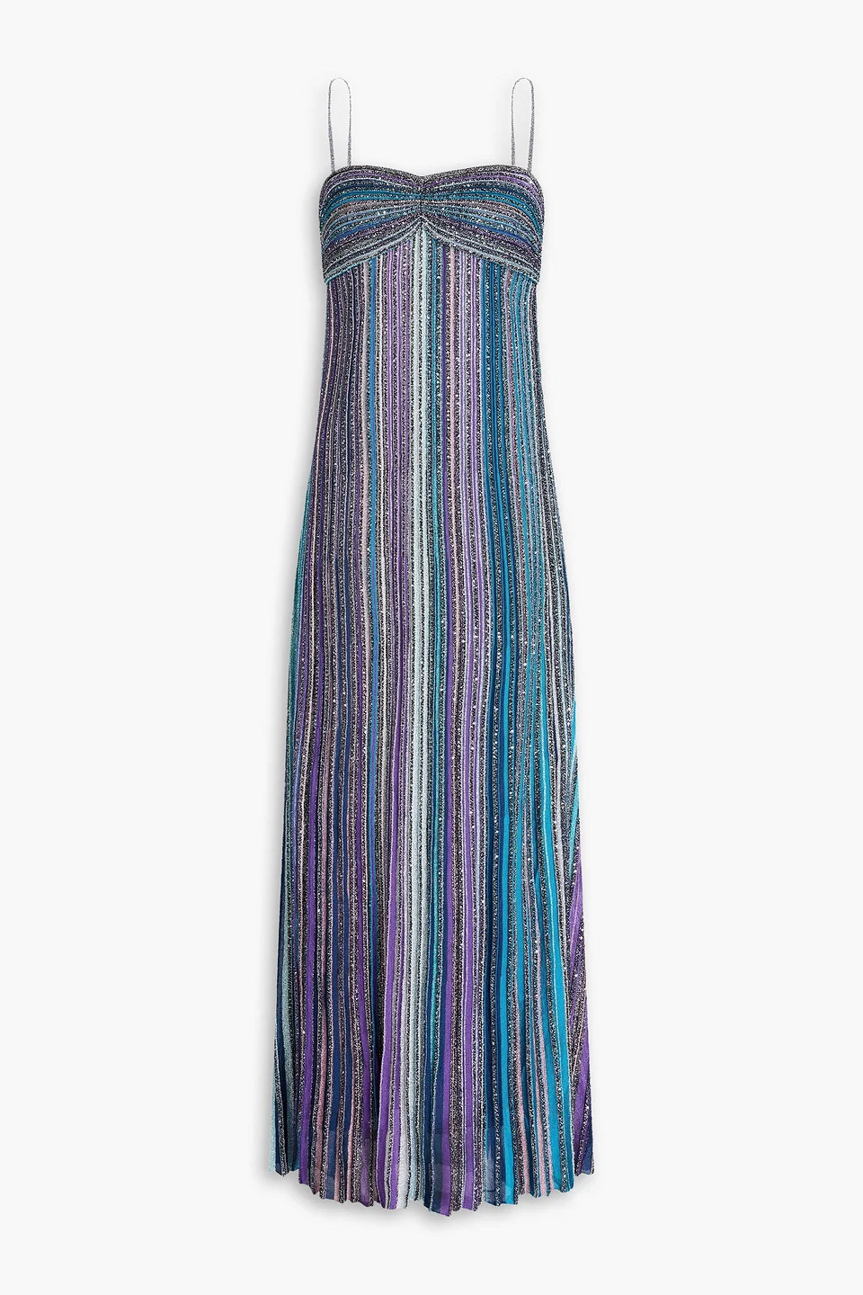 Sequin-embellished striped ribbed-knit maxi dress