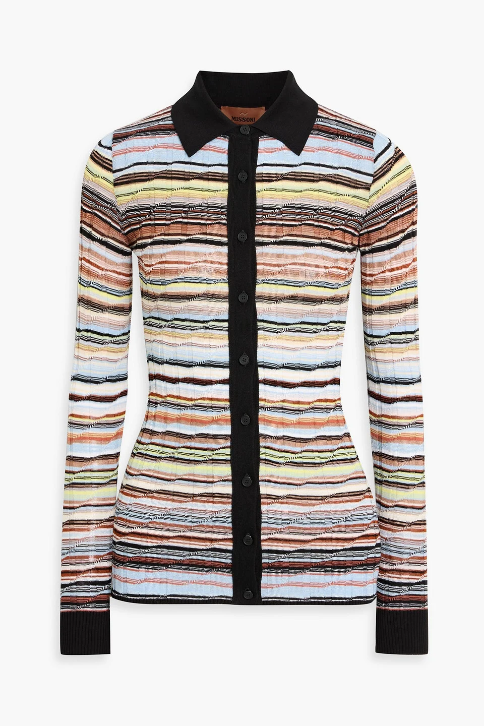 Shirt space-dyed cotton-blend ribbed button fastenings through front mid-weight knit dry clean imported 75% Cotton 23% Viscose 1% Elastane 1% Polyamide Product Code 46376663163075681