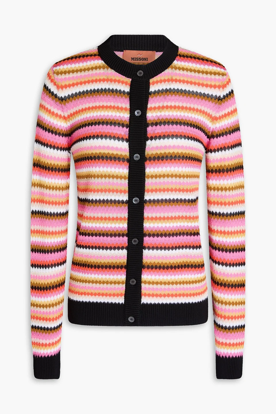 Cardigan striped crochet-knit cotton-blend ribbed trims button fastenings through front mid-weight knit hand wash or dry clean made in italy 50% Cotton 50% Viscose Product Code 46376663162882538
