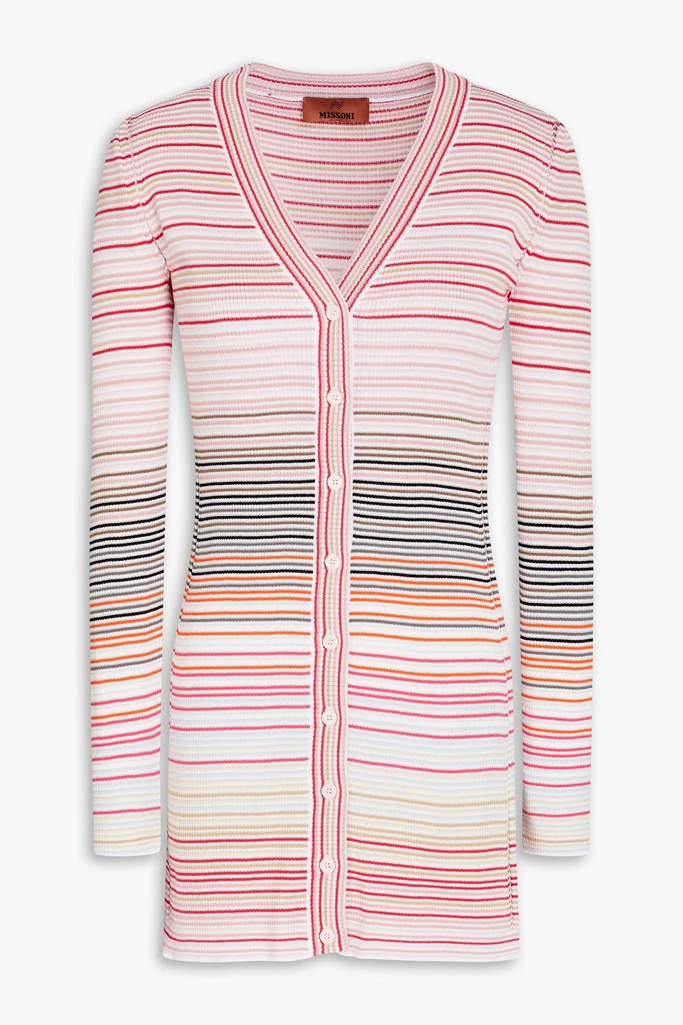 Striped ribbed cotton-blend cardigan