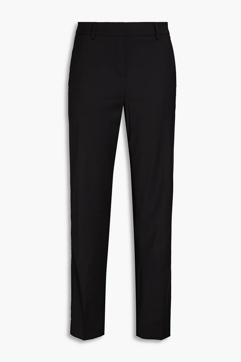 Slim-leg pants woven pressed creases two side slant pockets belt loops high-rise cut concealed hook, button and zip fastening at front slightly stretchy fabric mid-weight fabric dry clean imported 54% Polyester 44% Wool 2% Elastane Product Code 1647597329823016