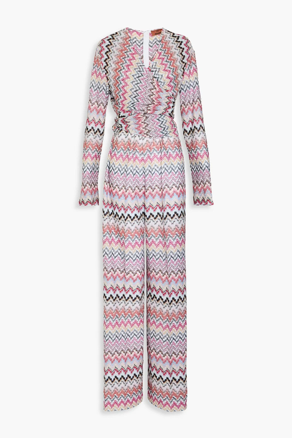 Jumpsuit metallic zigzag design crochet-knit wrap-effect waist ties concealed hook and zip fastening at back mid-weight knit hand wash made in italy 84% Viscose 16% Metallic fiber Product Code 1647597357561298