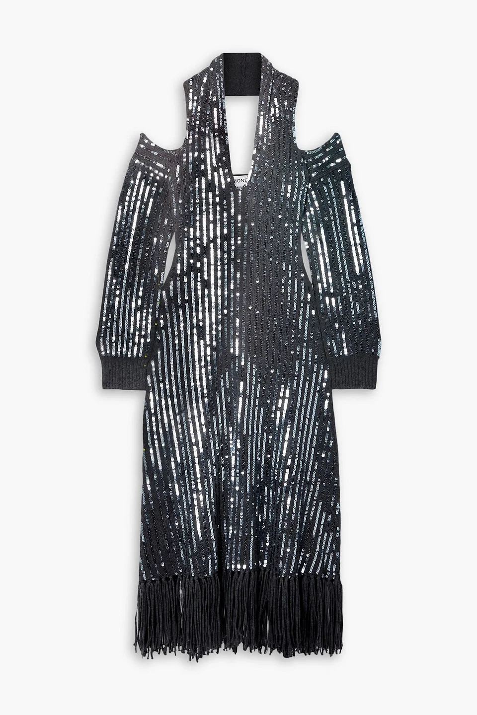 Fringed sequined merino wool halterneck midi dress