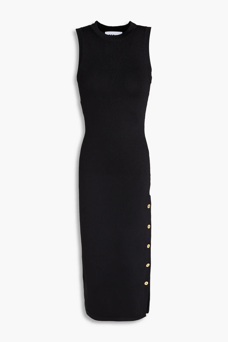 Dress knitted ribbed trims button-detailed side slit slips on mid-weight knit hand wash or dry clean made in italy 83% Viscose 17% Polyamide Product Code 1647597355840669