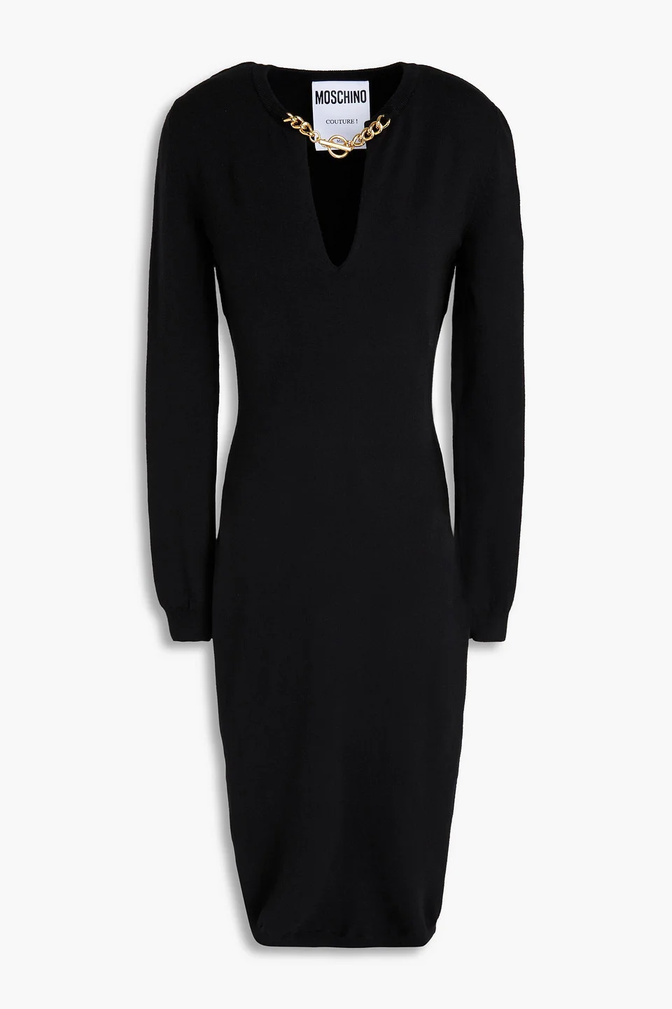 Chain-embellished wool midi dress