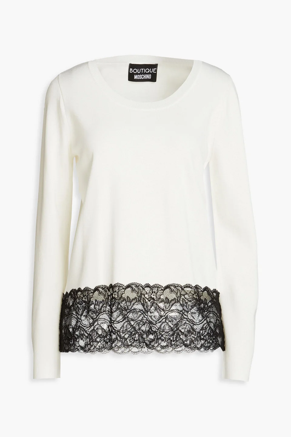 Chantilly lace-paneled stretch-knit sweater