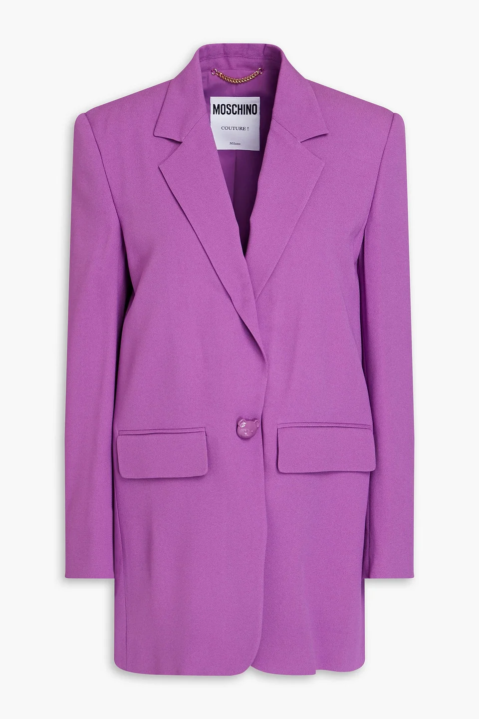 Blazer crepe two front flap pockets snap fastening at front fully lined back vent non-stretchy fabric mid-weight fabric dry clean made in italy 70% Acetate 30% Viscose Product Code 1647597332847506