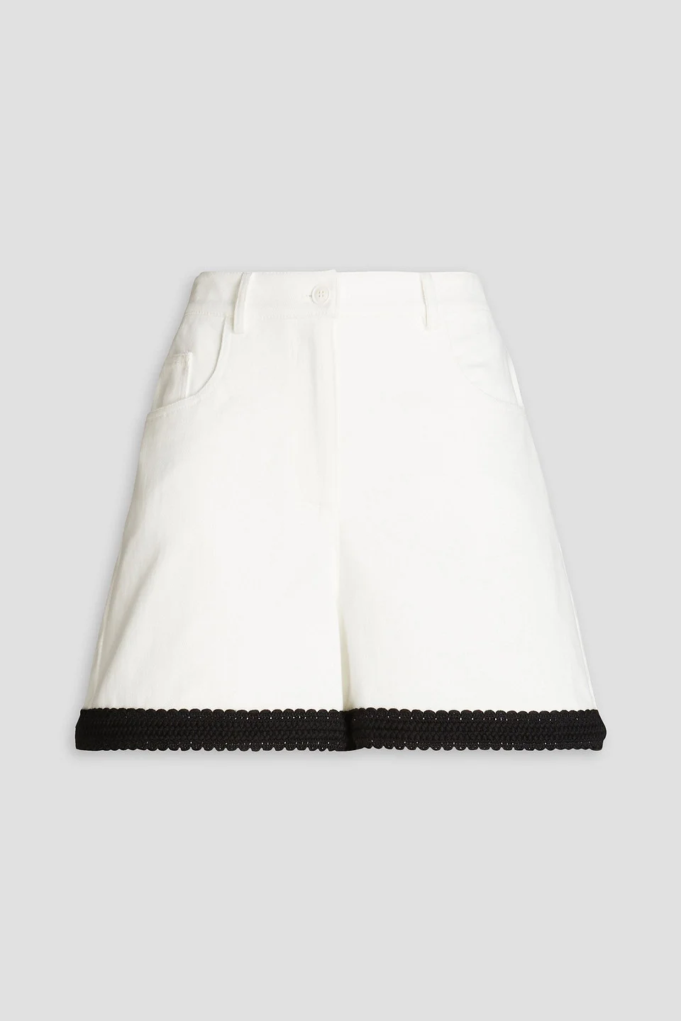 Shorts denim embroidered logo crochet trims belt loops high-rise cut multipockets button and concealed zip fastening at front non-stretchy fabric mid-weight fabric dry clean imported Designer follows its own size guide, please refer to the below: IT 34 = US 0/ UK 2/ FR 30 IT 36 = US 2/ UK 4/ FR 32 IT 38 = US 4/ UK 6 / FR 34 IT 40 = US 6/ UK 8/ FR 36 IT 42 = US 8/ UK 10/ FR 38 IT 44 = US 10/ UK 12/ FR 40 IT 46 = US 12/ UK 14/ FR 42 IT 48 = US 14/ UK 16/ FR 44 IT 50 = US 16/ UK 18/ FR 46 IT 52 = US 18/ UK 20/ FR 48 100% Cotton Product Code 1647597318301284