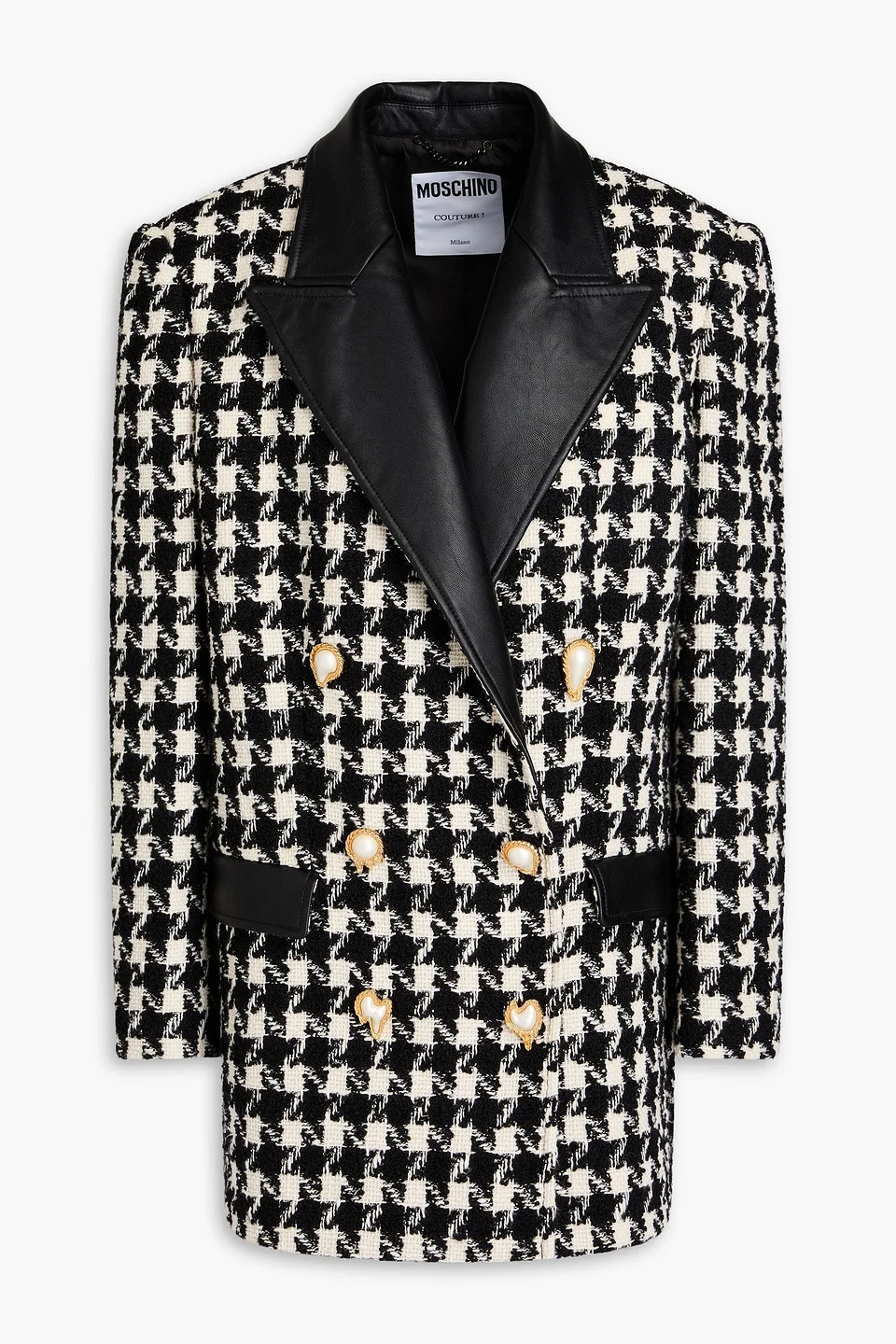 Blazer houndstooth tweed wool-blend button-embellished shoulder pads synthetic trims snap-fastening cuffs snap fastenings through double-breasted front fully lined back vent mid-weight, non-stretchy fabric dry clean imported 74% Virgin Wool 20% Cotton 6% Polyamide Product Code 1647597346586210