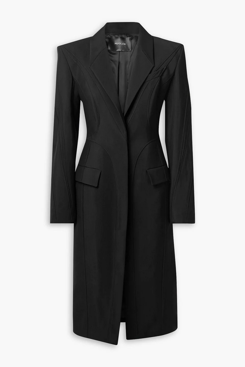 Coat twill shoulder pads breast pocket front flap pockets back vent fully lined concealed button fastening at front mid-weight, non-stretchy fabric dry clean imported 76% Viscose 24% Wool Product Code 46376663163077726