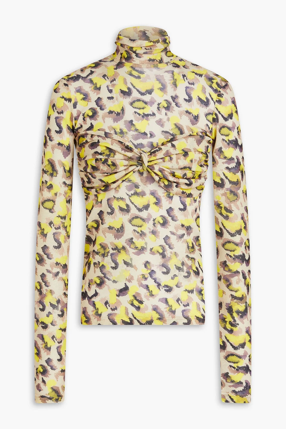 Knotted leopard-print jersey turtleneck top