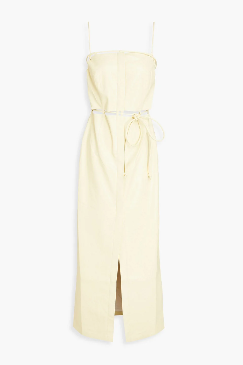 Dress okobor™ bow-detailed cutout front split concealed button fastenings through front fully lined mid-weight, slightly stretchy fabric dry clean imported 100% Recycled polyester 0% Polyurethane Product Code 1647597343152962