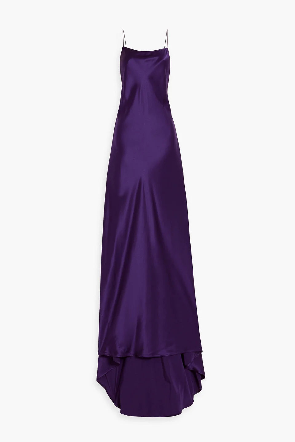 Style yours with drop earrings and towering heels for an evening spent celebrating gown silk-satin open back train hem slips on mid-weight, non-stretchy fabric dry clean 100% Silk Product Code 1647597359275342