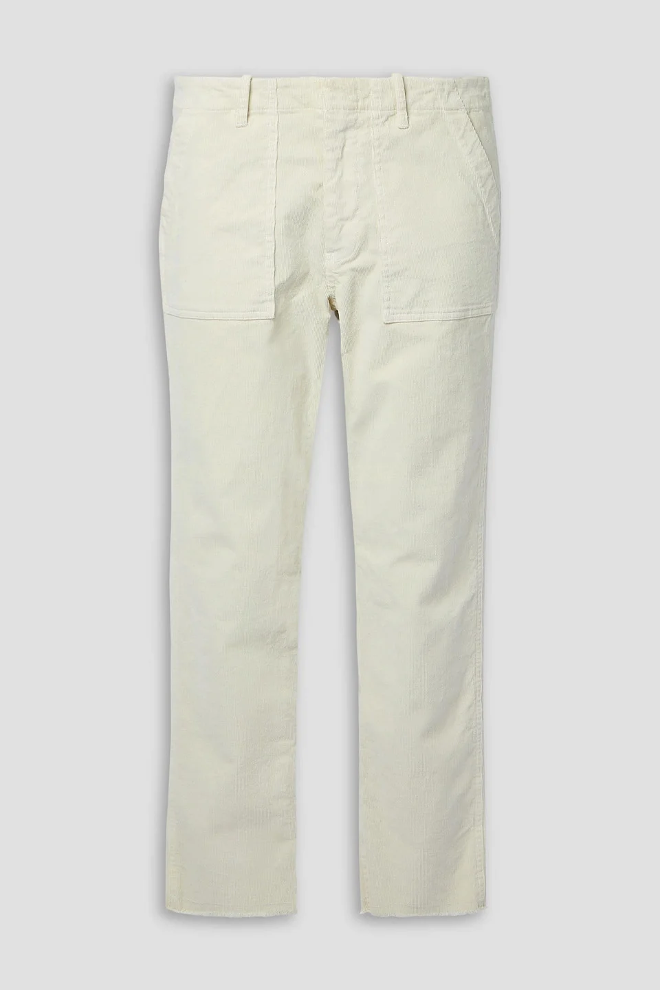 Slim-leg pants corduroy cotton-blend cropped two front patch pockets two back flap pockets belt loops mid-rise cut frayed cuffs concealed hook and zip fastening at front mid-weight, stretchy fabric machine wash 93% Cotton 6% Polyester 1% Spandex Product Code 1647597325398401