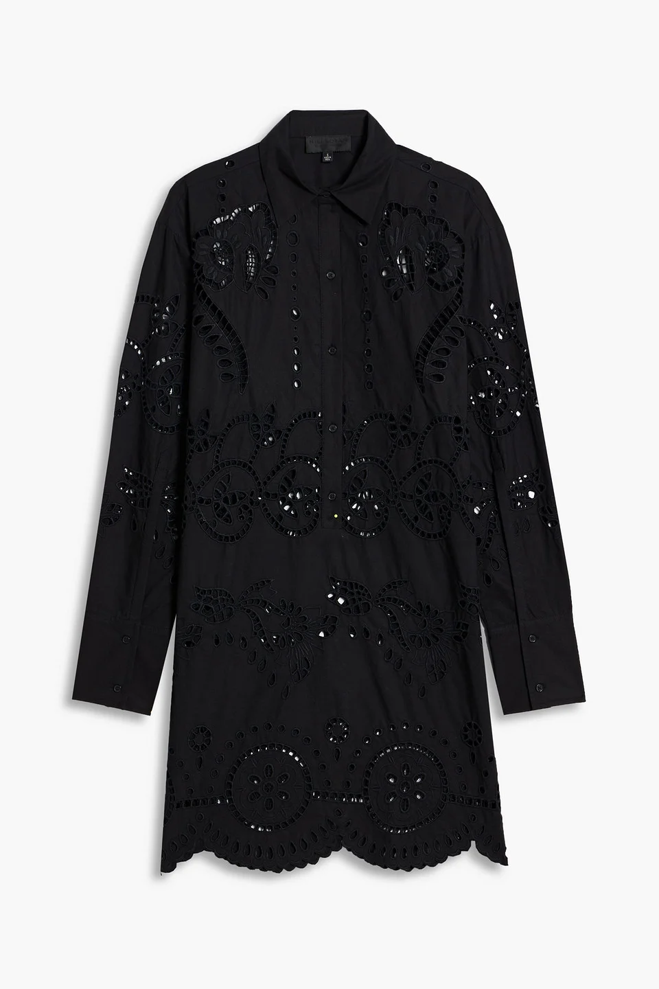 Shirt dress broderie anglaise cotton buttoned cuffs scalloped hem button fastenings along front mid-weight, non-stretchy fabric dry clean imported 100% Cotton Product Code 1647597359361089