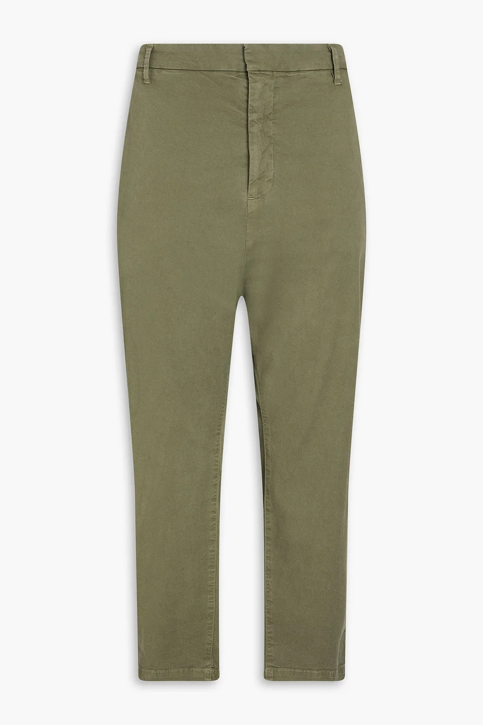 Tapered pants stretch-cotton twill cropped two side slant pockets two back flap pockets belt loops mid-rise cut concealed hook, button and zip fastening at front mid-weight, slightly stretchy fabric machine wash or dry clean 97% Cotton 3% Elastane Product Code 1647597348178572