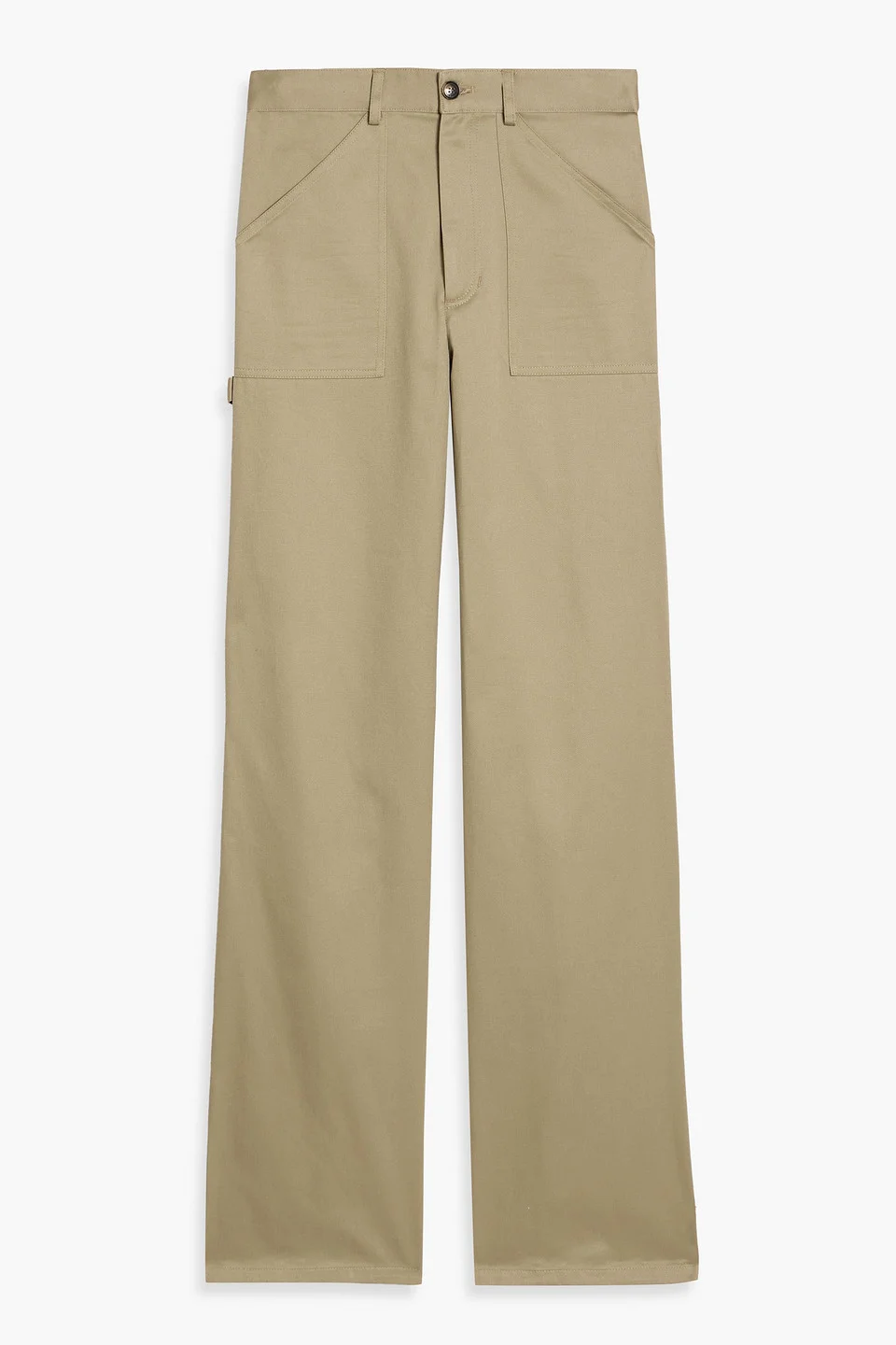 Flared pants cotton front slant pockets back patch pockets belt loops high-rise cut button and concealed zip fastening at front mid-weight, non-stretchy fabric machine wash 100% Cotton Product Code 46376663163006878