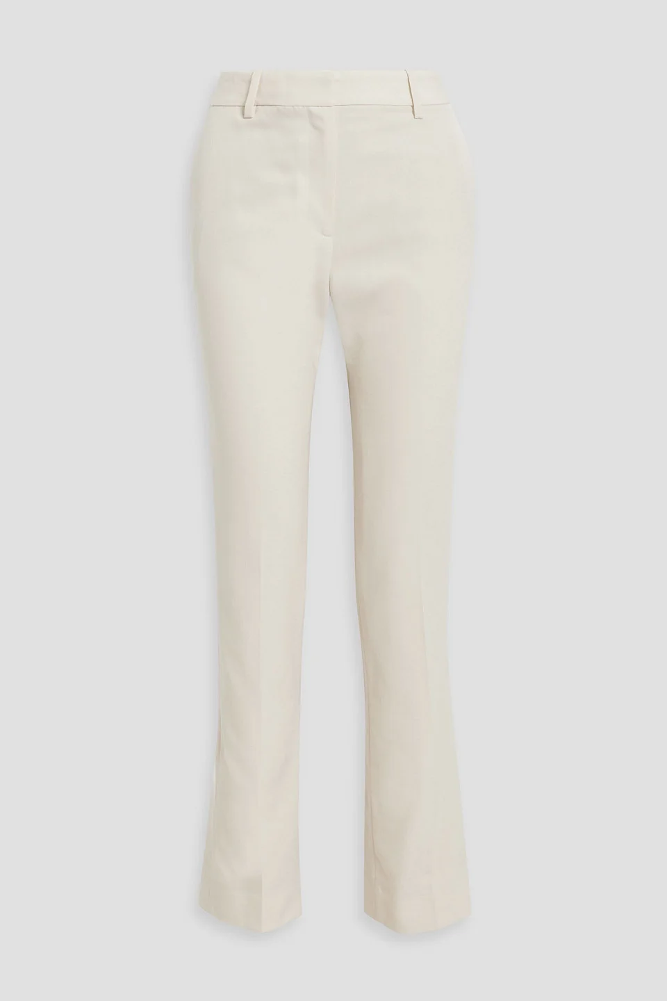 Straight-leg pants wool-twill pressed creases front slant pockets back welt pockets belt loops high-rise cut fully lined mid-weight, non-stretchy fabric dry clean 100% Virgin Wool Product Code 46376663162867274
