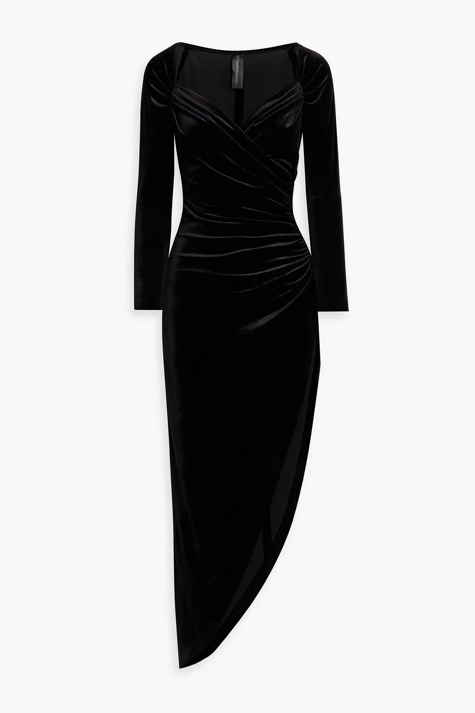 Dress velvet ruched asymmetric hem slips on mid-weight, slightly stretchy fabric dry clean imported Norma Kamali’s velvet dress serves serious drama in the most elegant way. With its sculpted bodice and daring asymmetric hem, it’s your favorite LBD’s mysterious and more glamorous sister. Accessories that pop will earn you extra style points. 91% Polyester 9% Elastane Product Code 1647597324891269