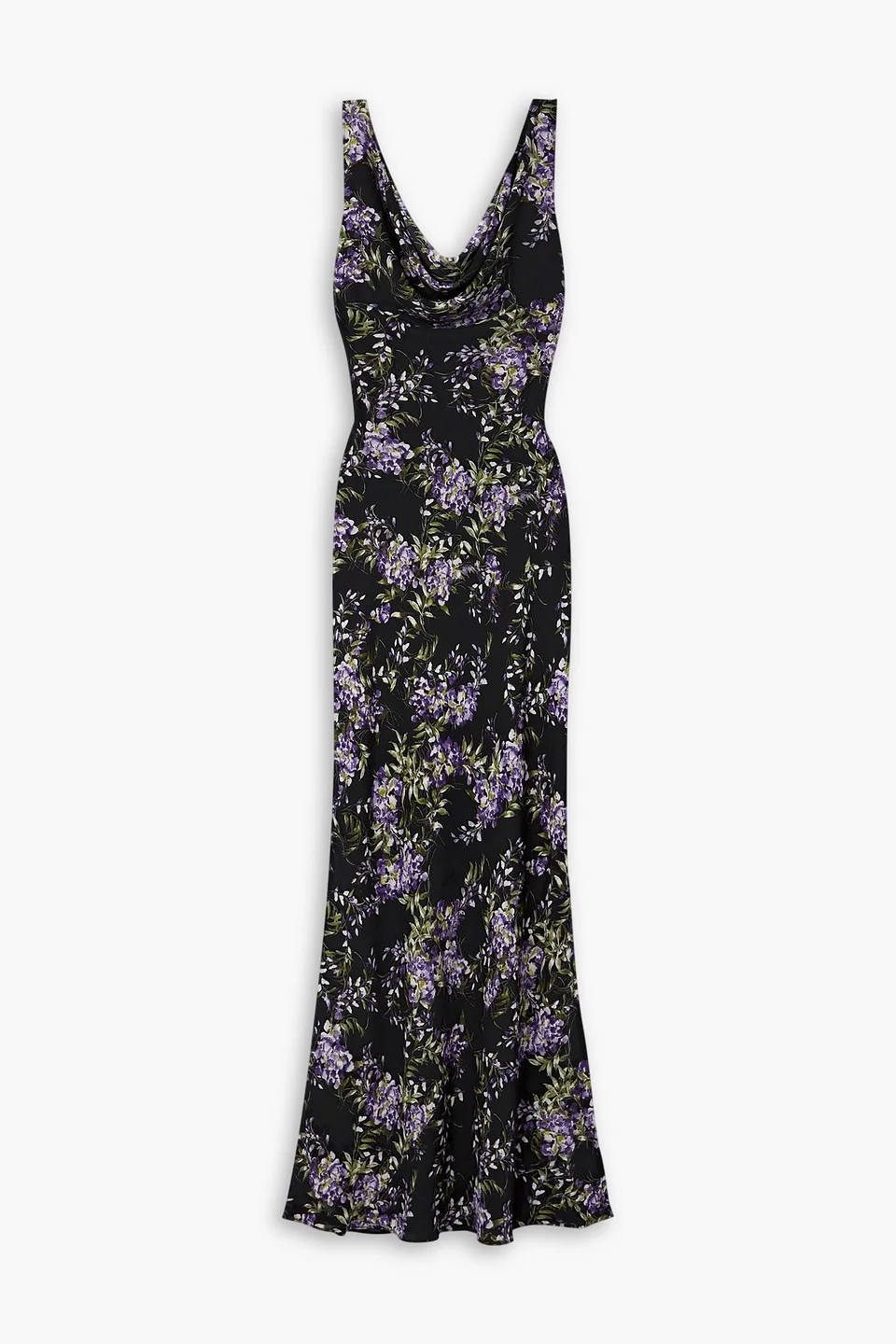 Draped floral-print chiffon gown