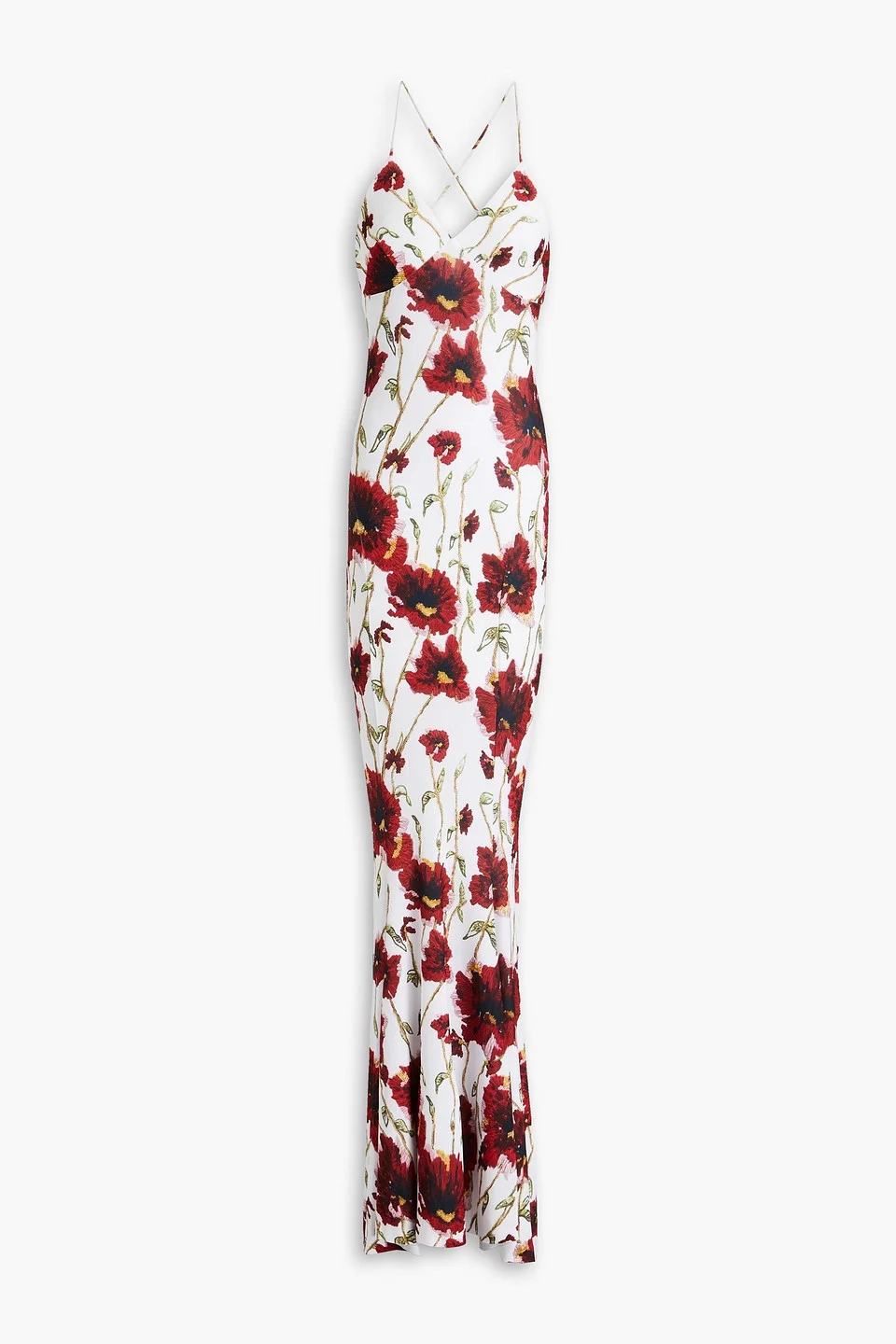 Step out in this floral-print number for your next garden party or summer wedding gown floral-print stretch-jersey crossover straps open back slips on mid-weight, stretchy fabric hand wash imported 95% Polyester 5% Spandex Product Code 1647597355659584