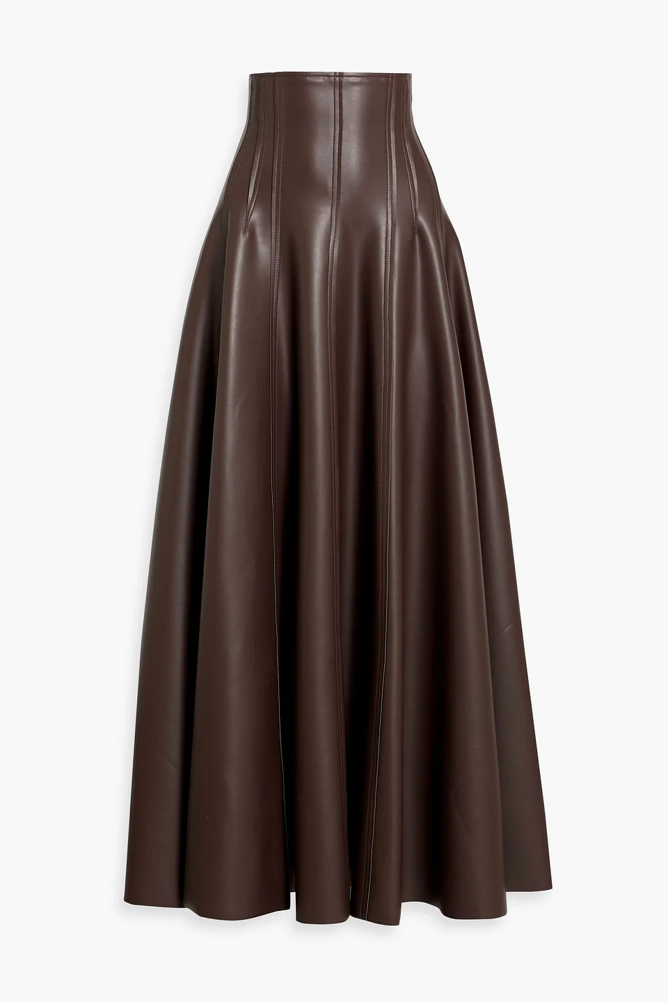 Skirt synthetic material topstitching flared hem concealed zip fastening along side mid-weight, non-stretchy fabric machine wash imported 100% Polyurethane Product Code 46376663163121759