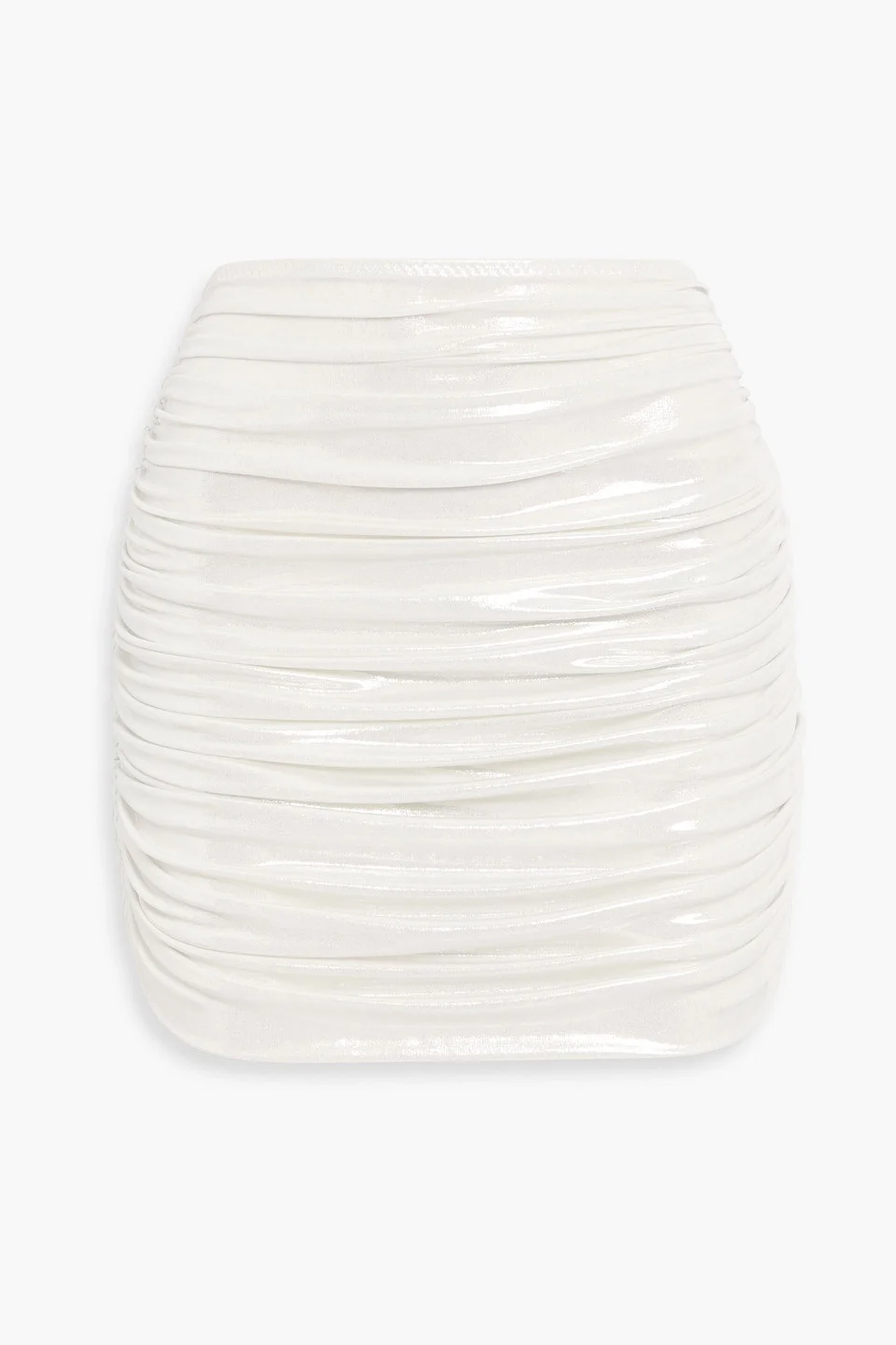 Skirt lame ruched elasticated waist slips on mid-weight, stretchy fabric dry clean imported 95% Polyester 5% Spandex Product Code 46376663163061900