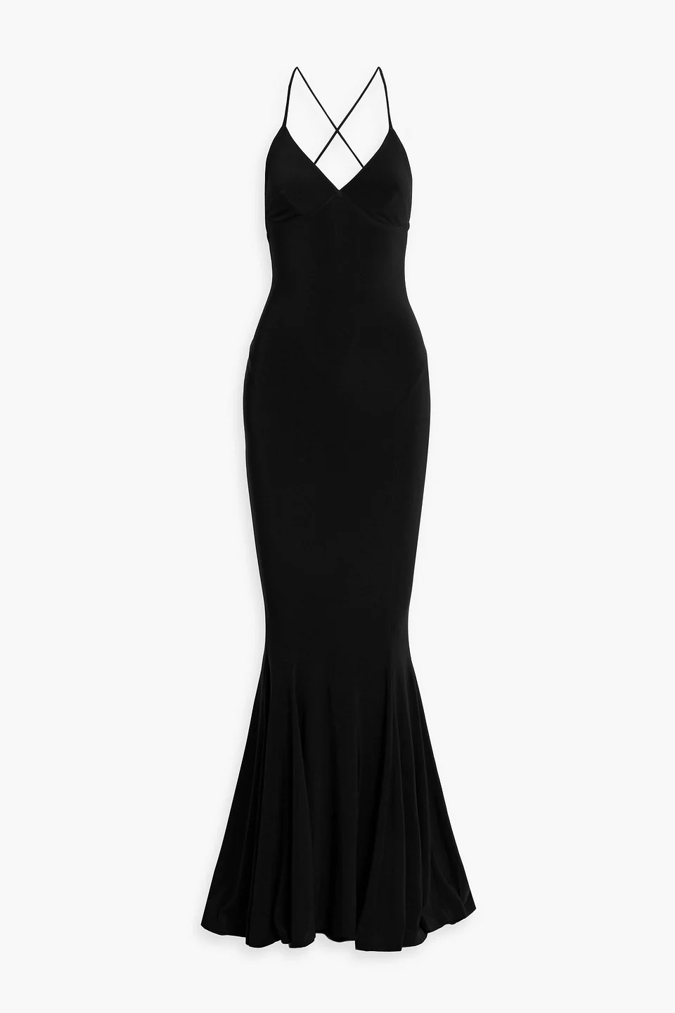 Gown stretch-jersey crossover straps slips on mid-weight, stretchy fabric machine wash There’s nothing more alluring than a slinky black dress – and this Norma Kamali gown is no exception. Made from figure-hugging stretch-jersey, it lets your silhouette be the star. The crossover straps and scooped back means your exit will be just as eye-catching as your entrance. 95% Polyester 5% Spandex Product Code 46376663162971523