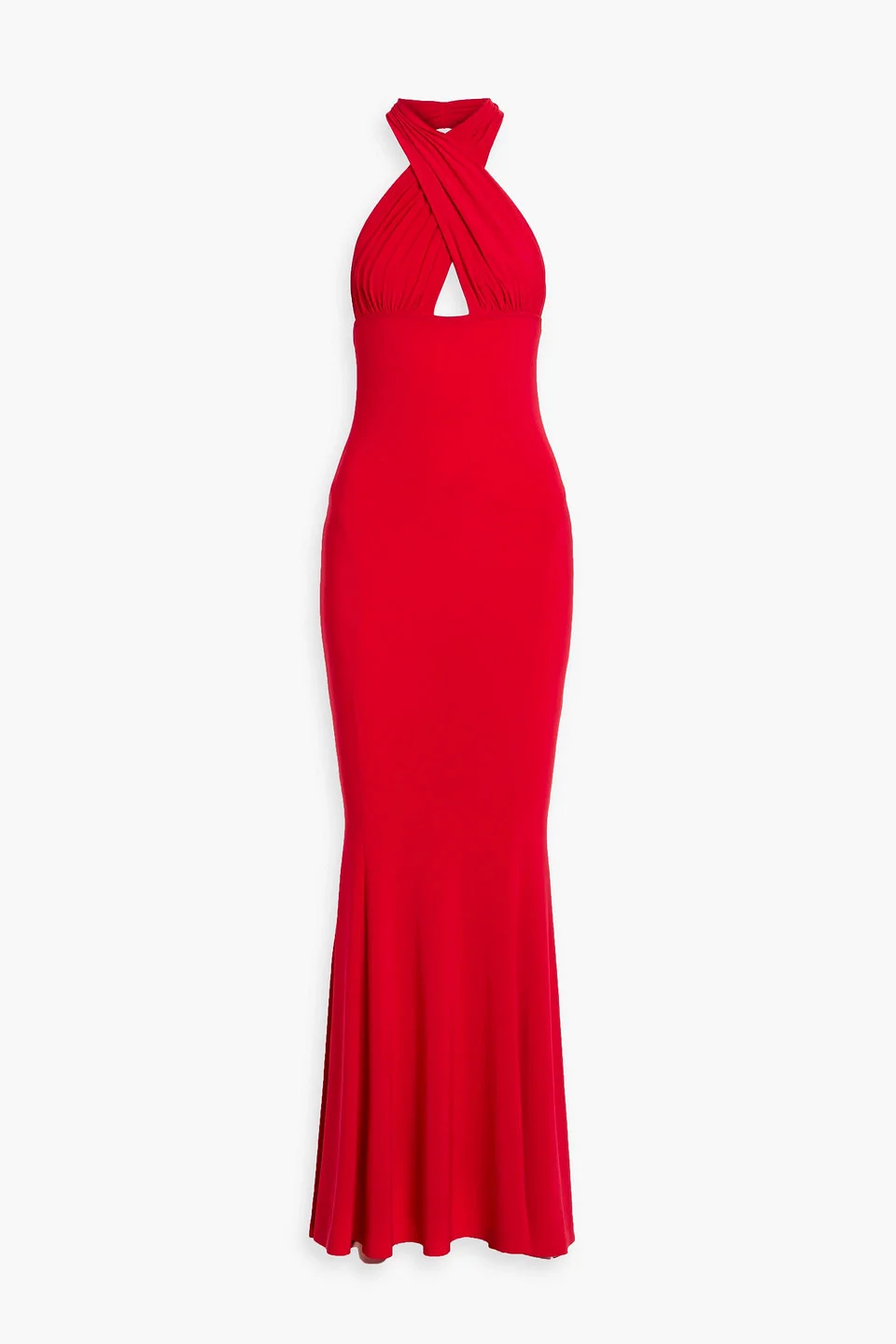 Keep the styling as effortless as the design with barely-there sandals gown stretch-jersey crossover front fluted hem slips on mid-weight, stretchy fabric machine wash imported 95% Polyester 5% Elastane Product Code 46376663163121708