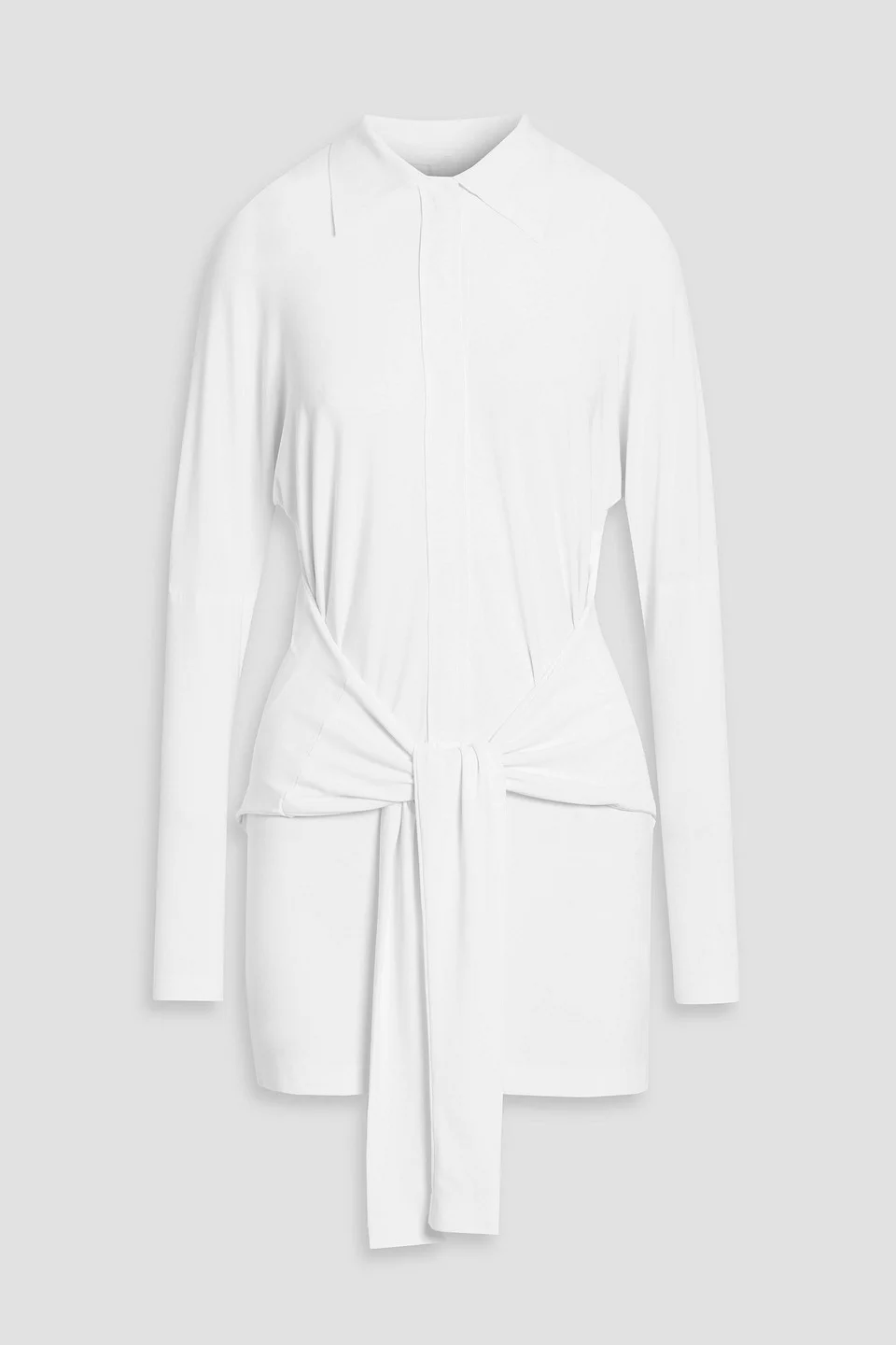 Shirt dress stretch-jersey waist ties velcro® fastening at front concealed zip fastening along front mid-weight, stretchy fabric hand wash imported 95% Polyester 5% Spandex Product Code 46376663163121757