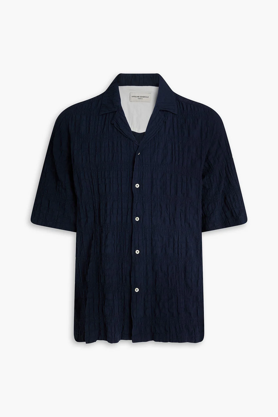 Shirt cotton-blend crinkled camp collar short sleeves button fastenings through front mid-weight, non-stretchy fabric machine wash or dry clean imported 97% Organic Cotton 3% Elastane Product Code 46376663163060552
