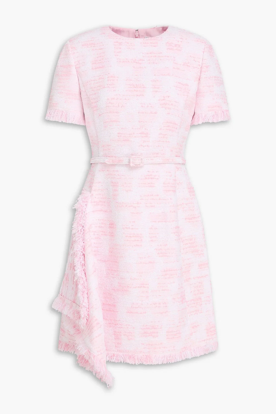 Dress tweed fringed trims draped detachable belt concealed hook and zip fastening at back mid-weight, non-stretchy fabric dry clean made in italy 48% Polyester 28% Polyamide 20% Cotton 4% Other Fibres Product Code 46376663162931577
