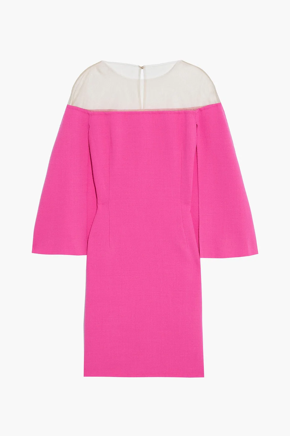 Cape-effect tulle-paneled wool-blend crepe mini dress
