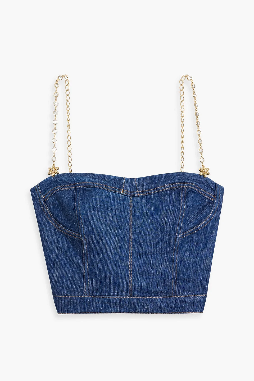 Top denim chain-embellished cropped zip fastening through back mid-weight, non-stretchy fabric machine wash made in italy 99% Cotton 1% Elastane Product Code 1647597359544866