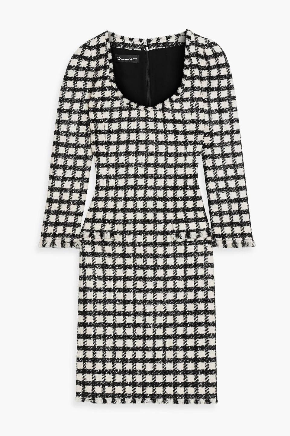 Dress checked boucle-tweed wool-blend frayed trims concealed hook and zip fastening at back fully lined mid-weight, non-stretchy fabric dry clean made in italy 72% Virgin Wool 28% Polyamide Product Code 1647597349588888