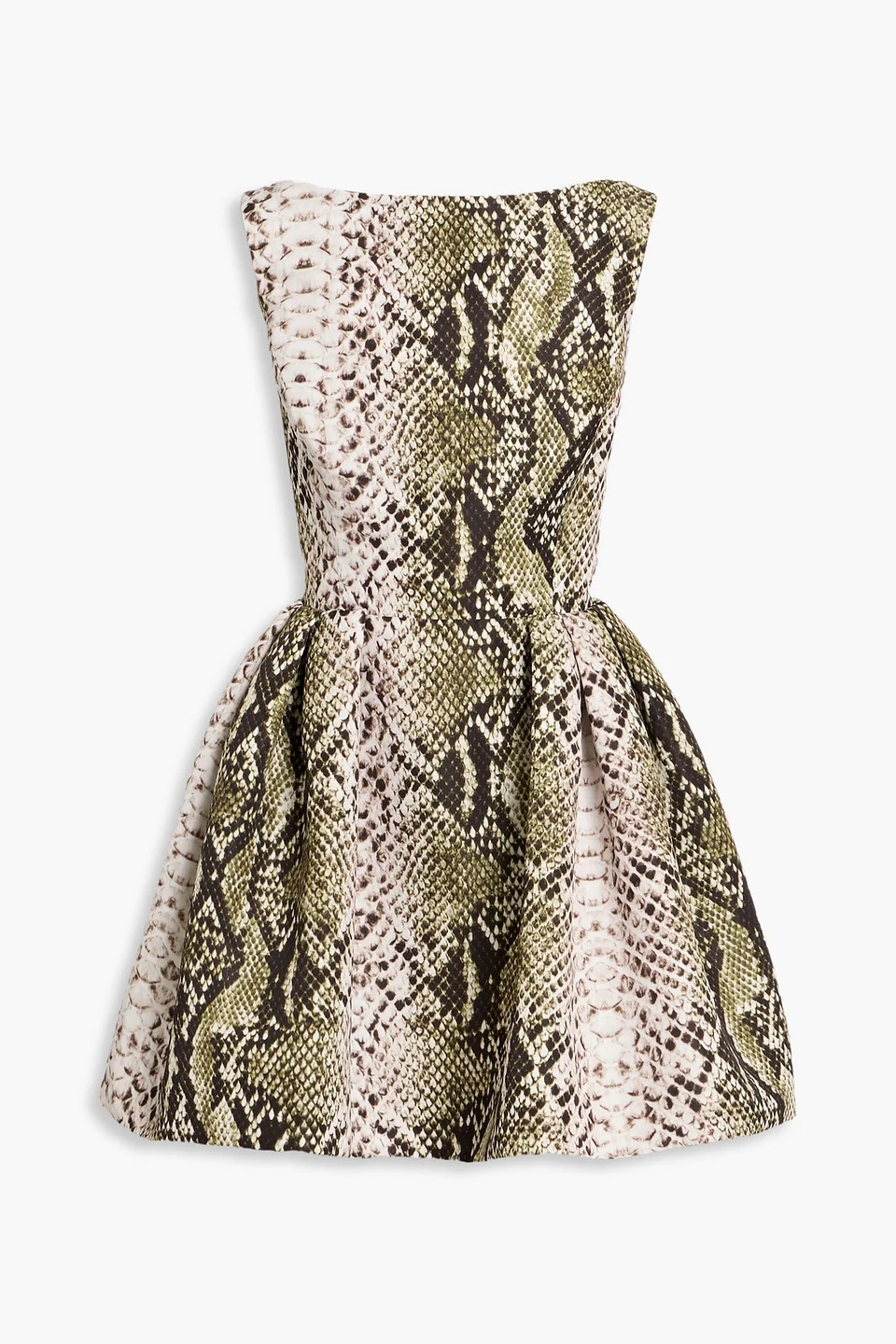 Flared snake-print faille mini dress