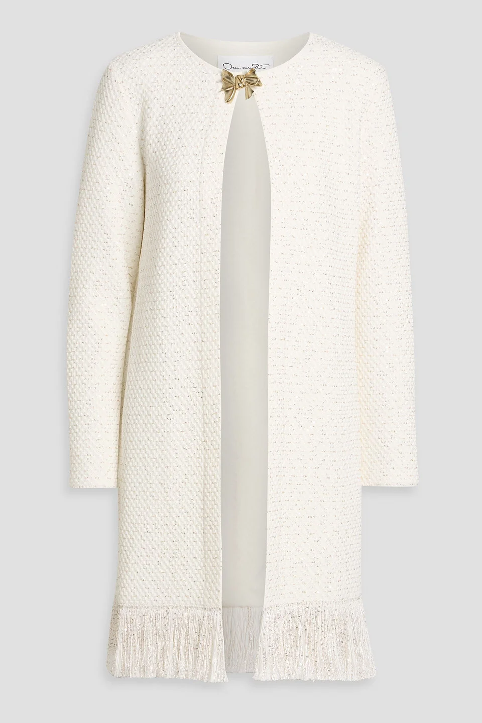 Coat textured-knit fringed sequins fully lined hook fastening at front mid-weight knit dry clean made in italy 62% Viscose 27% Polyester 11% Polyamide Product Code 46376663163059616