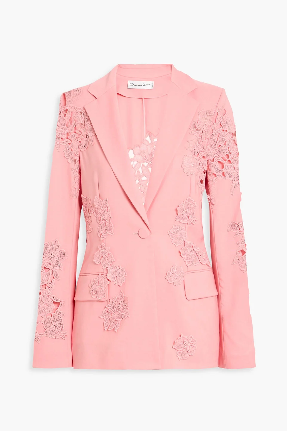 Blazer guipure lace wool and mohair-blend paneled slit cuffs front flap pockets button fastening at front back vent mid-weight, non-stretchy fabric dry clean made in italy 83% Virgin Wool 17% Mohair wool Product Code 46376663163059320