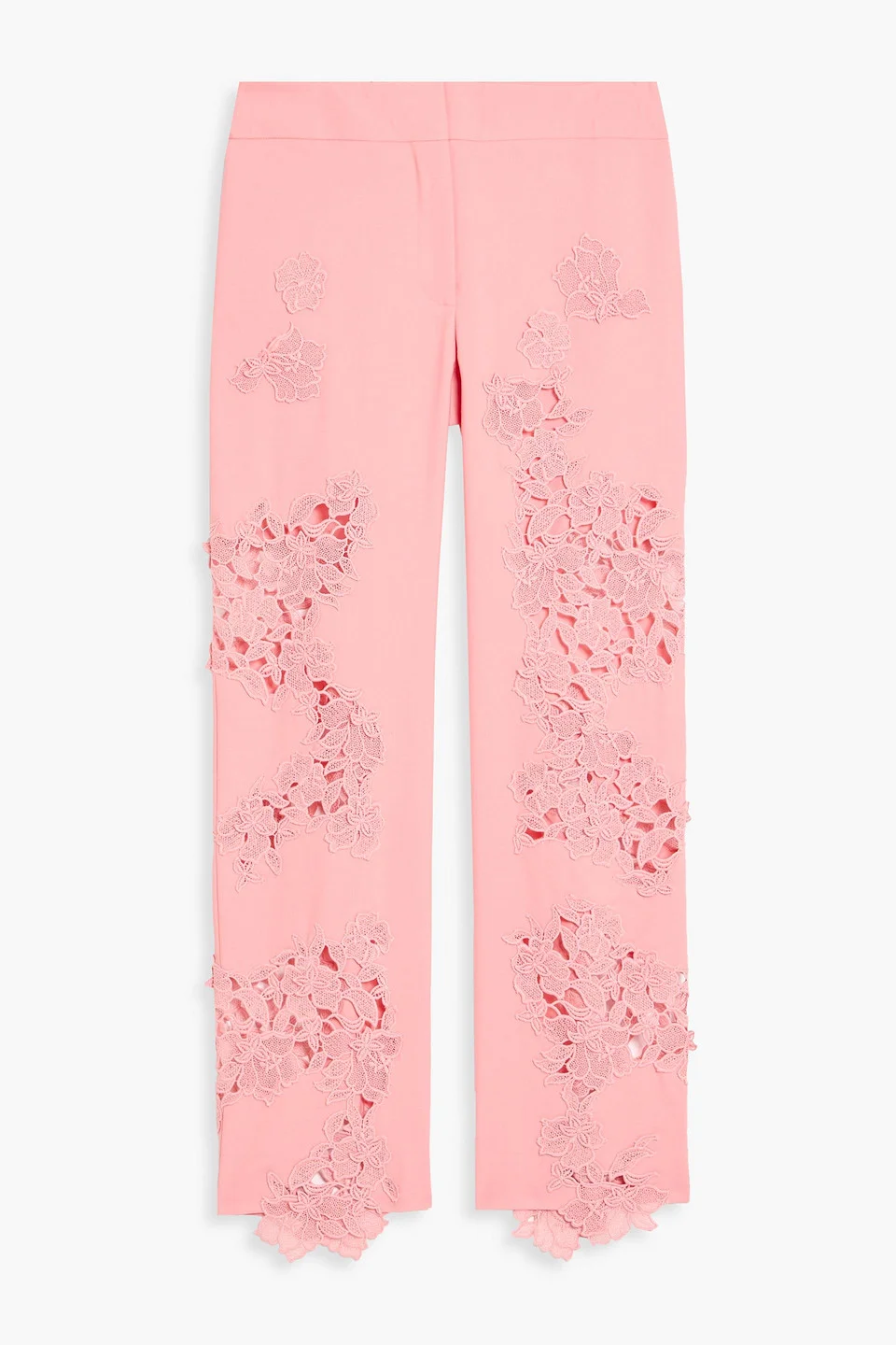 Guipure lace-paneled wool and mohair-blend straight-leg pants