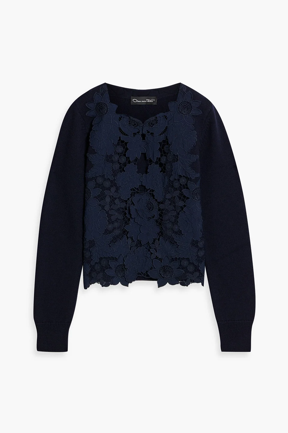 Guipure lace-paneled wool cardigan