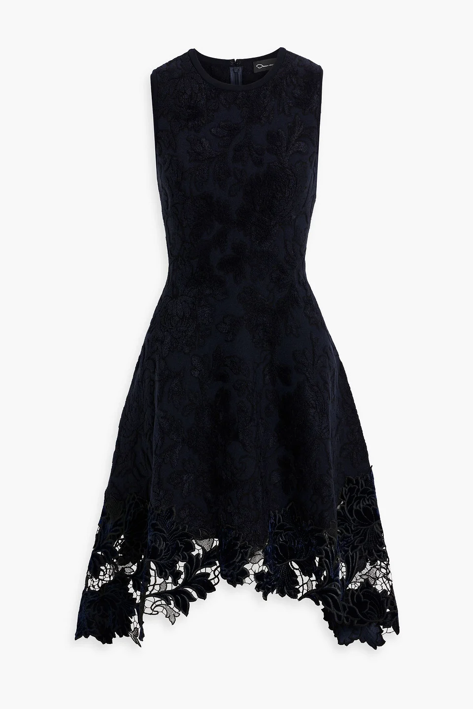 Dress velvet-jacquard guipure lace trims asymmetric hem concealed hook and zip fastening at back mid-weight, slightly stretchy fabric dry clean made in italy 69% Viscose 17% Polyamide 13% Polyester 1% Elastane Product Code 46376663162920696