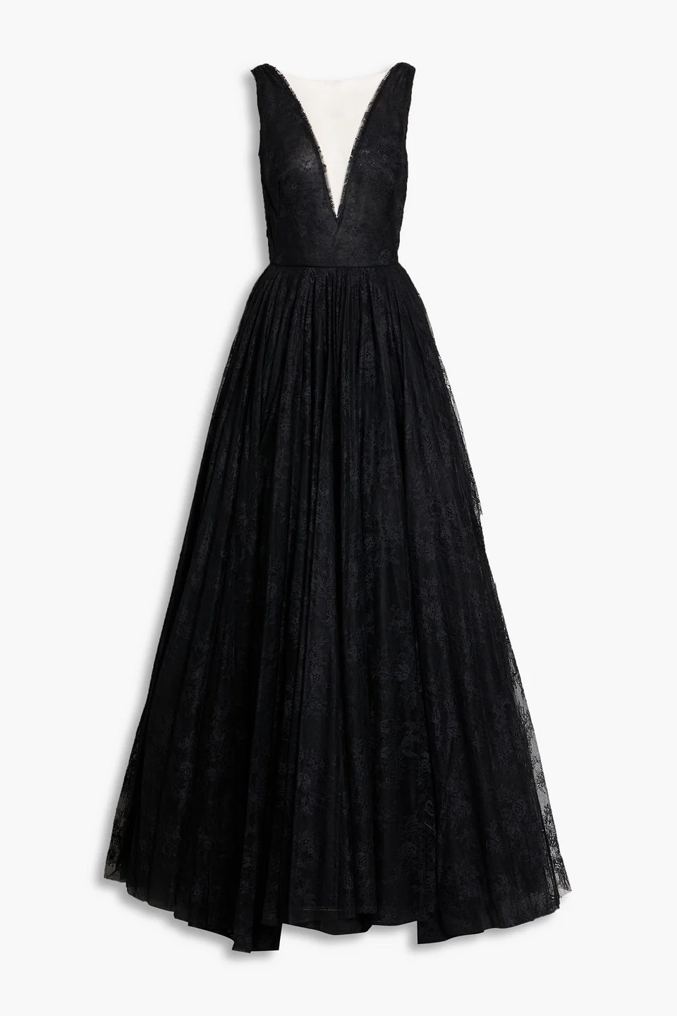 This impeccably crafted design is best suited for black tie receptions and events gown lace flared hem concealed hook and zip fastening at back fully lined lightweight, non-stretchy fabric dry clean 100% Nylon Product Code 46376663163055798