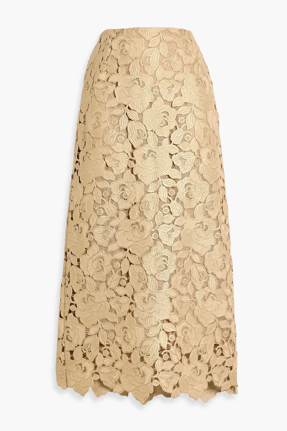 Metallic guipure lace midi skirt