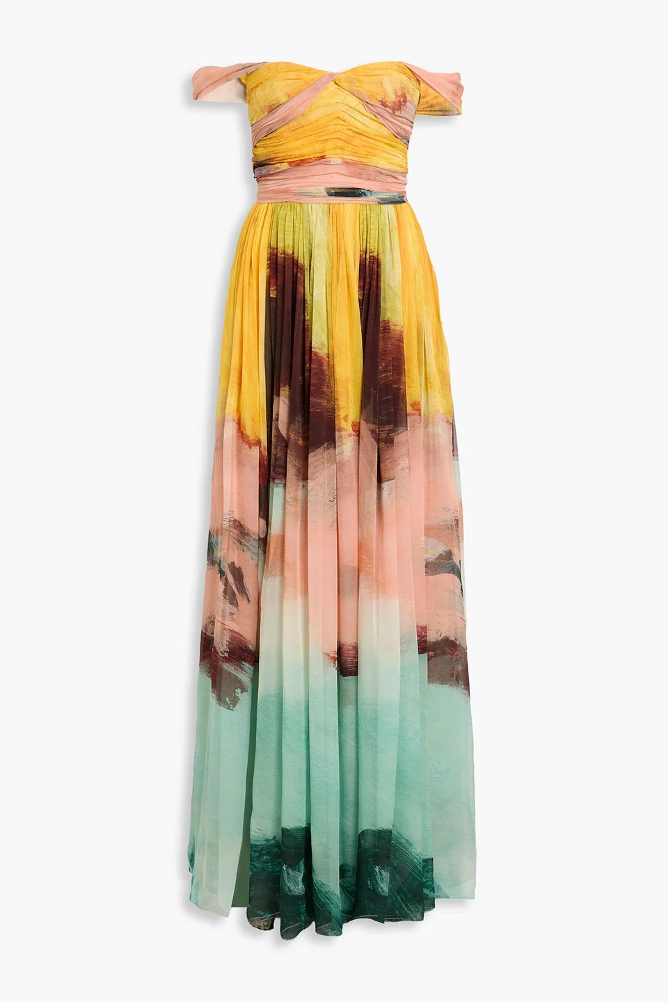 Designed to frame your decolletage, wear yours with swept-up hair and statement earrings gown printed silk-chiffon draped front slit concealed hook and zip fastening at back internal bustier lightweight, non-stretchy fabric dry clean made in italy 100% Silk Product Code 46376663163055734
