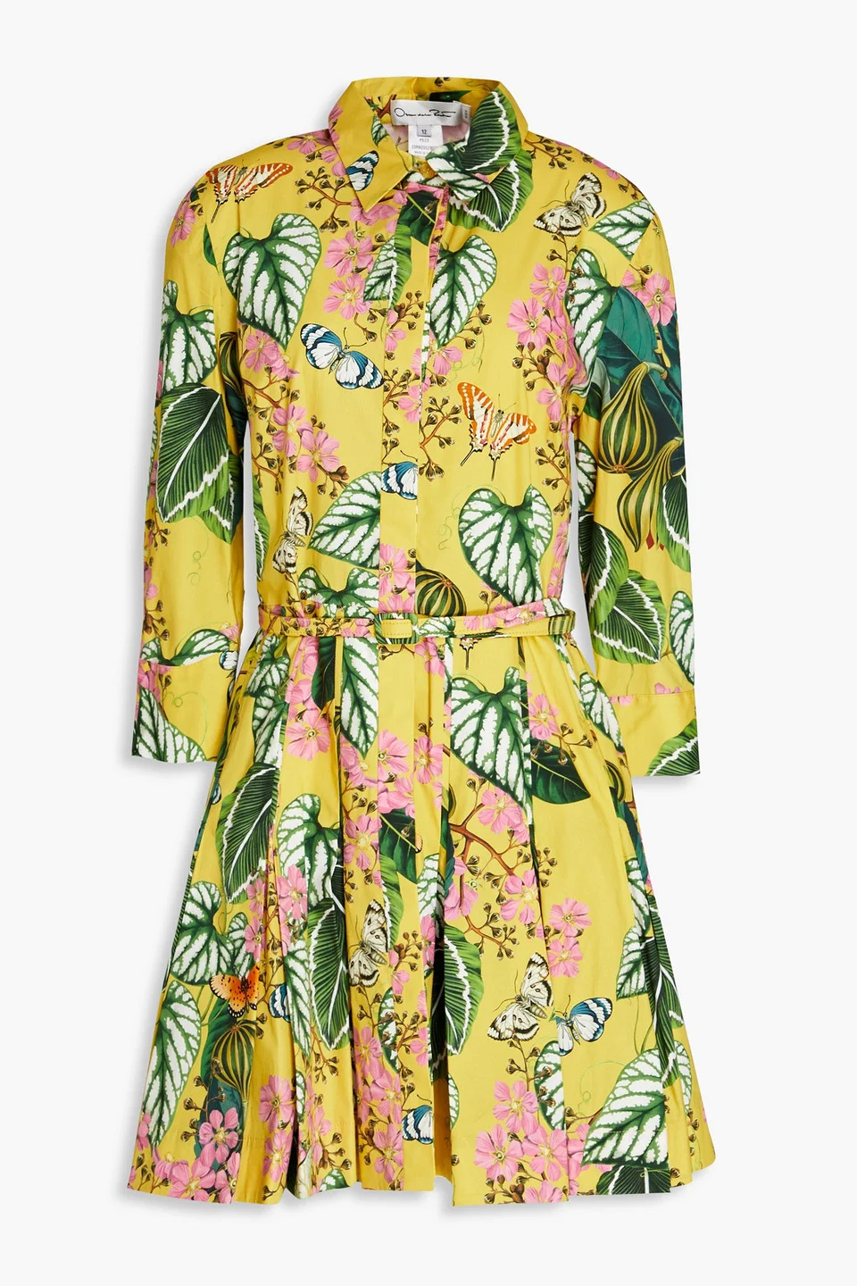 Shirt dress floral-print stretch-cotton poplin pleated detachable leather belt buttoned cuffs partially concealed button fastenings through front fully lined stretchy fabric mid-weight fabric dry clean made in italy 97% Cotton 3% Elastane 0% Leather Product Code 1647597331281117